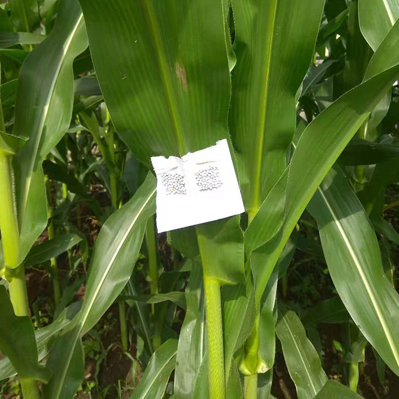 赤眼蜂防治水稻二三化螟、卷叶螟、玉米螟等,由于各地气候条件不同,害虫发生的时期也不同,要根据当地虫情测报指导下放蜂。放蜂期应在害虫产卵初期进行效果最佳。连续多年放赤眼蜂害虫基数减少,可适当减少放蜂量。一般每亩地放赤眼蜂2万头,每亩地放2~4点,将赤眼蜂抛卵球均匀抛入田中或将蜂卡挂在田间。相比常规防治区螟害率降低>20%,螟害株率降低>10%, 增产率>15%。